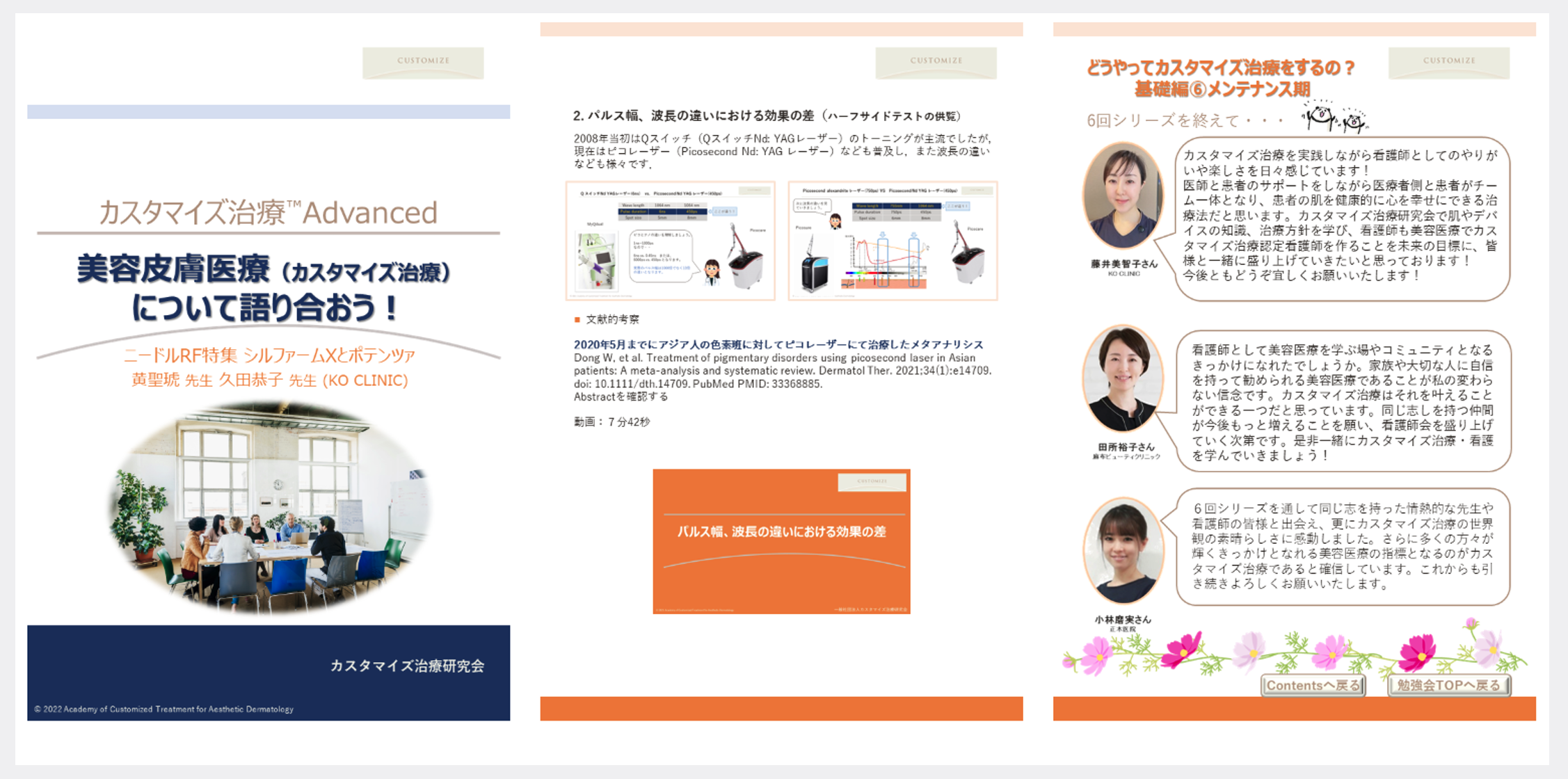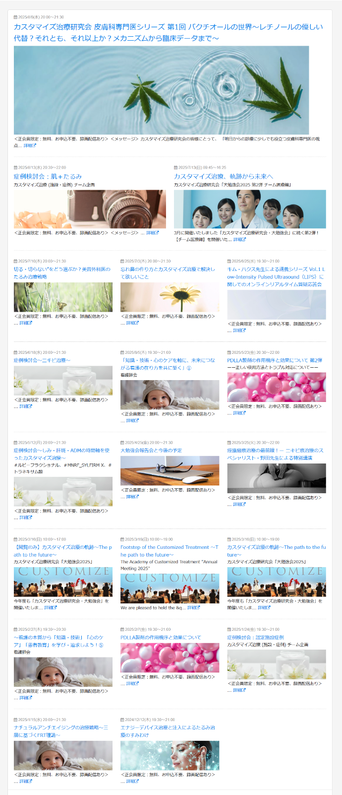 一般皮膚科知識やデバイスに関する専門的な知識を学べる機会や、仕事や生き方についての参加型企画もございます。